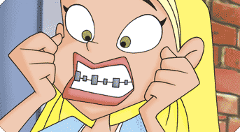 dertien met typische tienerproblemen en ze heeft ook nog is een beugel.